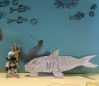 Der Taucher steigt in die Unterwasser Welt und besiegt einen Hai mithilfe eines magischen Dreizack.