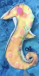 Das Seepferdchen taucht ab und schwimmt durch die Korallen und Algen hinweg.