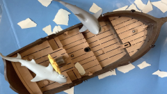 Die Schildkröte schwimmt durch Müll und ist traurig.